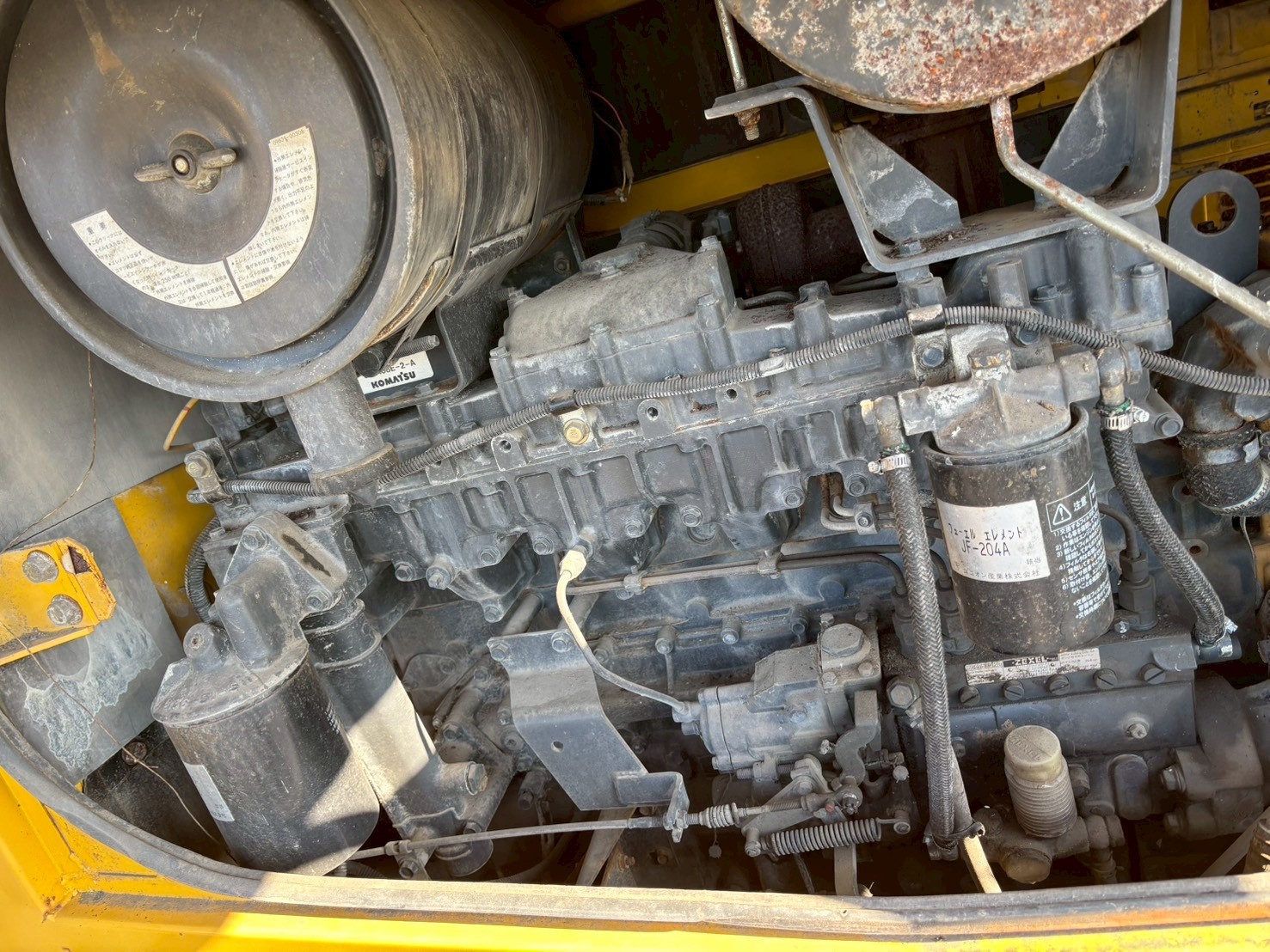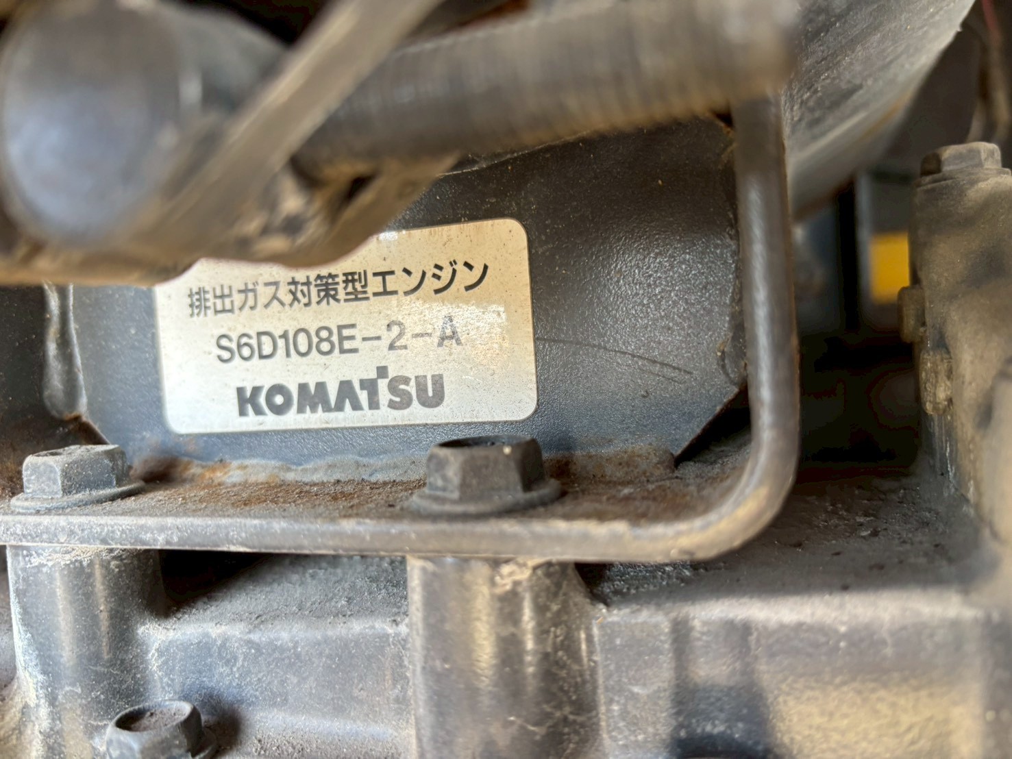 ※本機は排出ガス対策型エンジン(S6D108E-2-A)を搭載しており、エンジン本体にコマツ純正の排ガス対策銘板が確認できます。